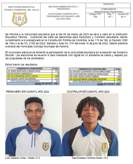 Elección de Personero y Contralor estudiantil 2024