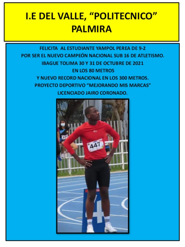 FELICITACIONES AL NUEVO CAMPEÓN NACIONAL SUB 16 DE ATLETISMO